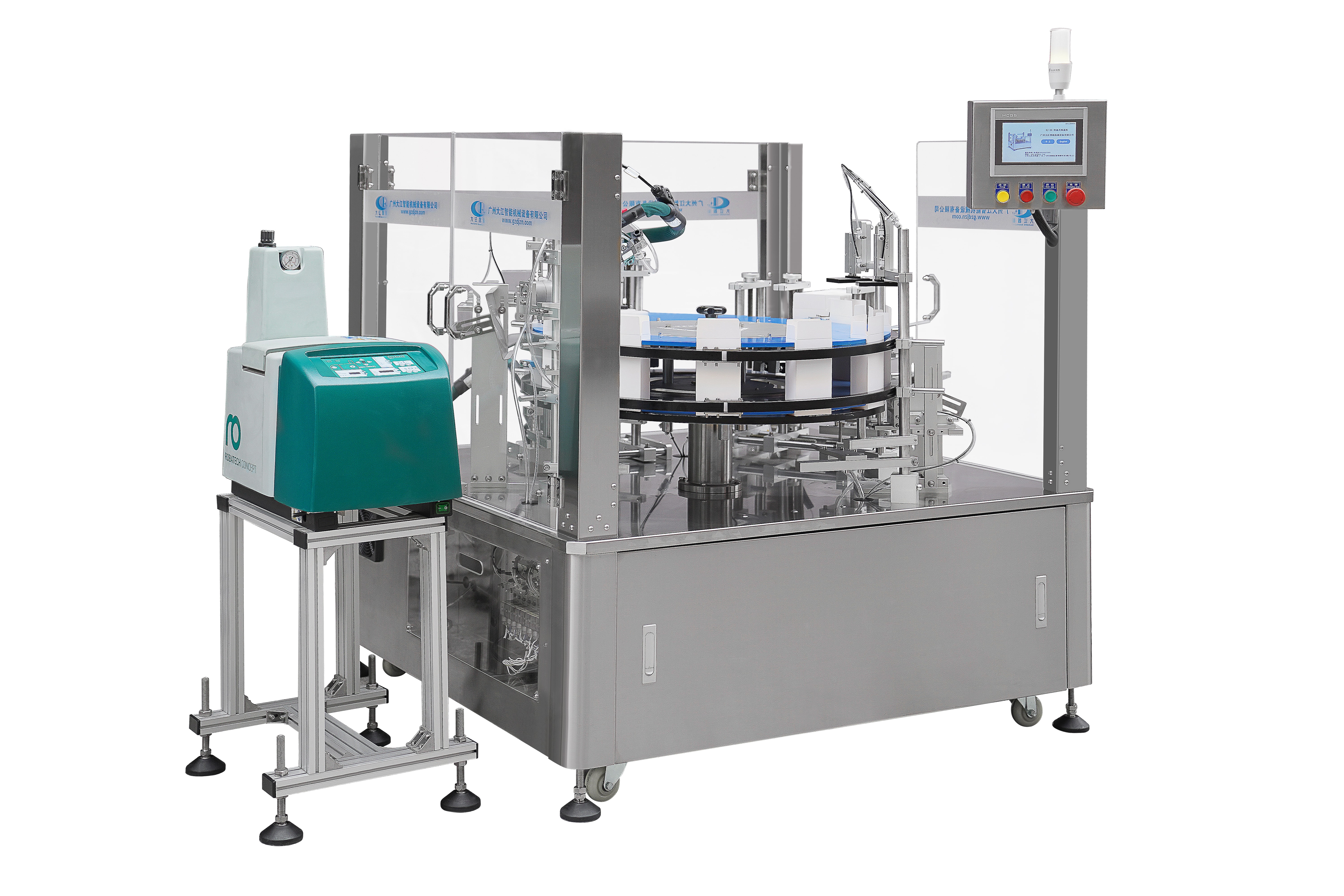 自動加說明書,熱熔膠噴膠封盒,碳帶日期批號打印